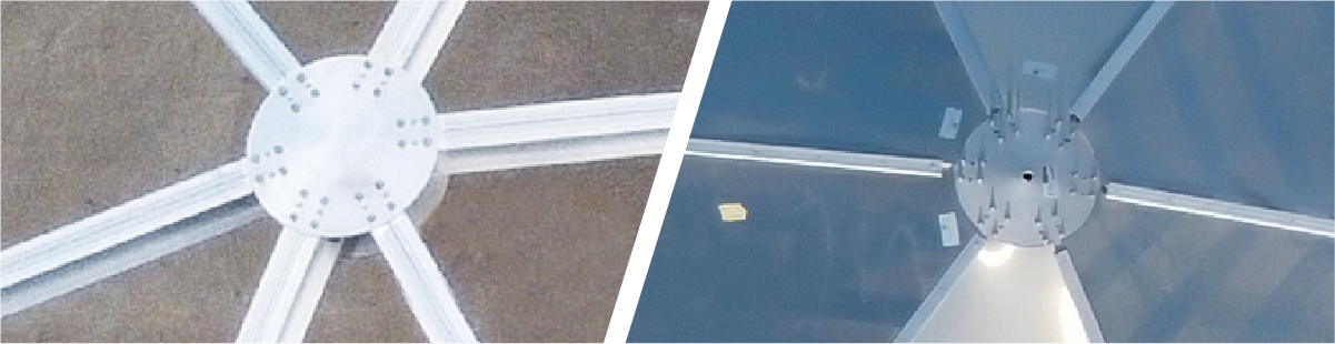 我們鋁穹頂蓋的梁采用獨特結構設計,可保護硅膠墊片免受紫外線照射及老化,也確保頂蓋密封性和增加頂蓋的結構強度。